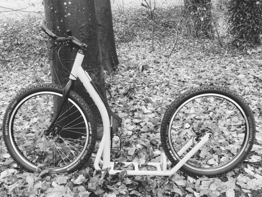 Oefenen remmen, afzet (kick) en draaien op de weg. Op veilig doodlopend terrein.
